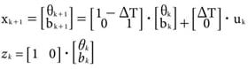 Let b = ωX0 and assuming that the gyroscope bias is constant coupled with white noise. Let gyroscope measurement ωX as the input uk . Then Eq. 2 can be rewritten as,