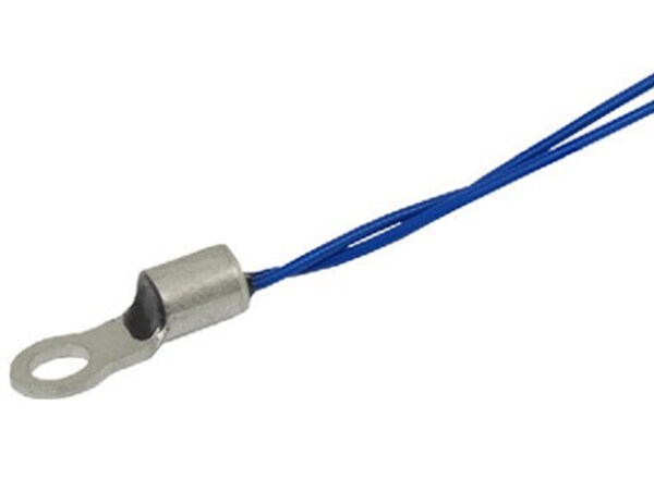 Vishay / BC Components NTCALUG01T NTC Thermistors are standard lug sensors with 150°C long-term stability and RoHS compliance. This AEC-Q200-qualified series offers 10KΩ resistance and rugged construction. The thermistors feature a ring tongue terminal for easy mounting. Vishay / BC Components NTCALUG01T NTC Thermistors are ideal for use in surface-sensing applications, especially ones in which good electrical insulation and good thermal contact with the chassis are required.Features